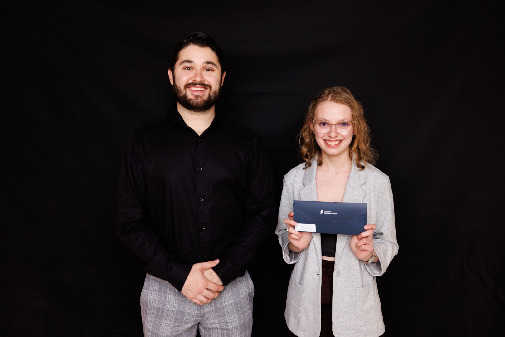 Jimmy Lafaille, chasseur de talents chez Premier Tech et Steacy Moreau de Saint-Germain-de-Kamouraska, récipiendaire de la bourse « Prix Hercule ».